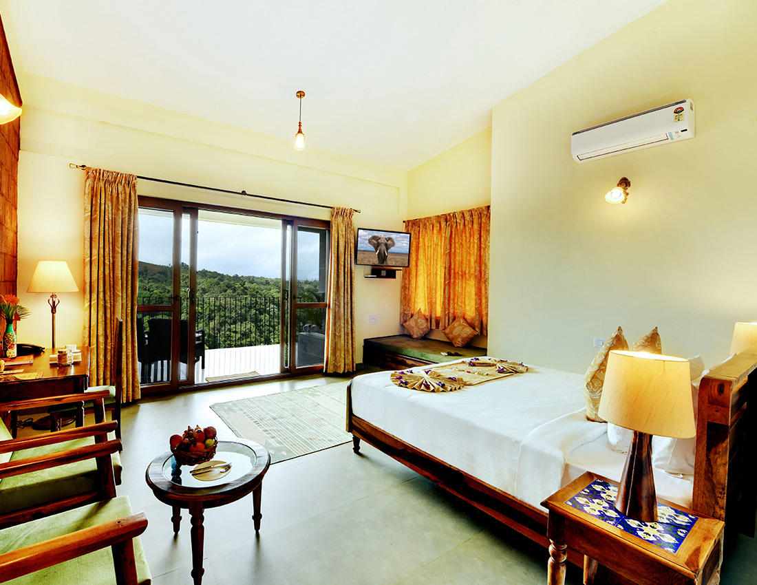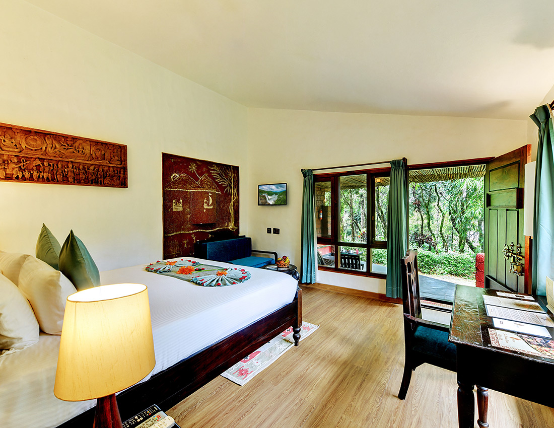 Discover moreNestled at the edge of the property overlooking the pristine pastures are our premium Cliff View Cottages. Expect unobtrusive views of panoramic mountains from the comfort of your bed. Enjoy a leisurely afternoon in your Bathtub at your private sit-out or delight in the misty mornings of Coorg while sipping your