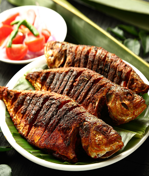 "Meen Fry" refers to a popular South Indian dish. It's known for its crispy and flavorful coating on the outside while keeping the fish inside tender and succulent.
