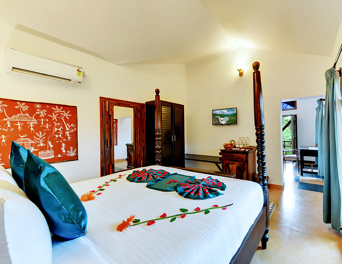 With up to 460 Sq. ft. of private space, our Suite Cottage has an air condition, bath tub a separate outdoor sitting area of 90 Sq. ft. In addition, the cottage is surrounded by green plants and a view of lush green garden.