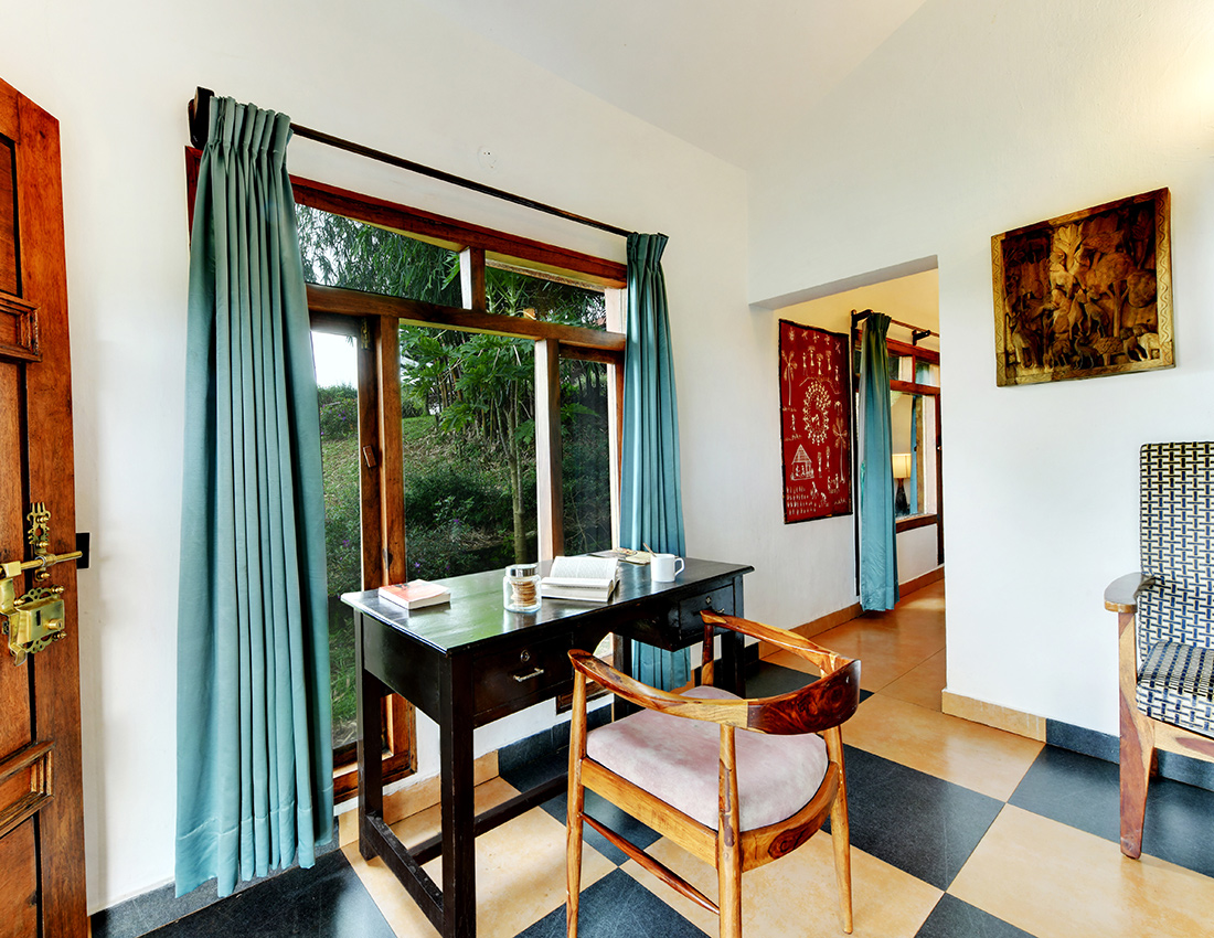 With up to 460 Sq. ft. of private space, our Suite Cottage has an air condition, bath tub a separate outdoor sitting area of 90 Sq. ft. In addition, the cottage is surrounded by green plants and a view of lush green garden.